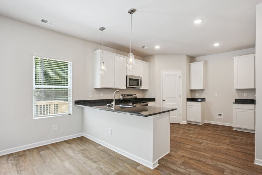 The modern, open concept design of the Jodeco allows families to easily spend time together or spread out. Upstairs you’ll find three bedrooms and the spacious primary suite. A flex room is located on the first floor and can be used as a bedroom, office, dining space and more. You will love the thoughtfully arranged kitchen which offers a view to the dining and living area. *Representative photography*