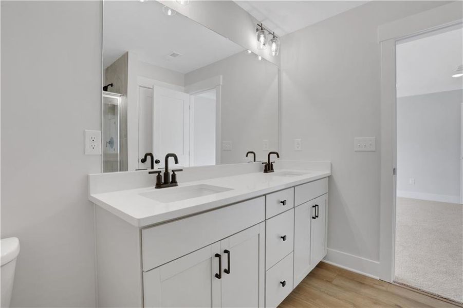 Upstairs, the thoughtfully designed second floor offers all three bedrooms, including a private primary suite highlighted by a sleek, tiled shower in the primary bath. Two additional well-sized bedrooms provide flexibility for guests, a home office, or growing needs, while a centrally located laundry room adds ease to daily routines. Completing the upper level is a versatile loft space, perfect for a cozy retreat, media area, or work-from-home setup.