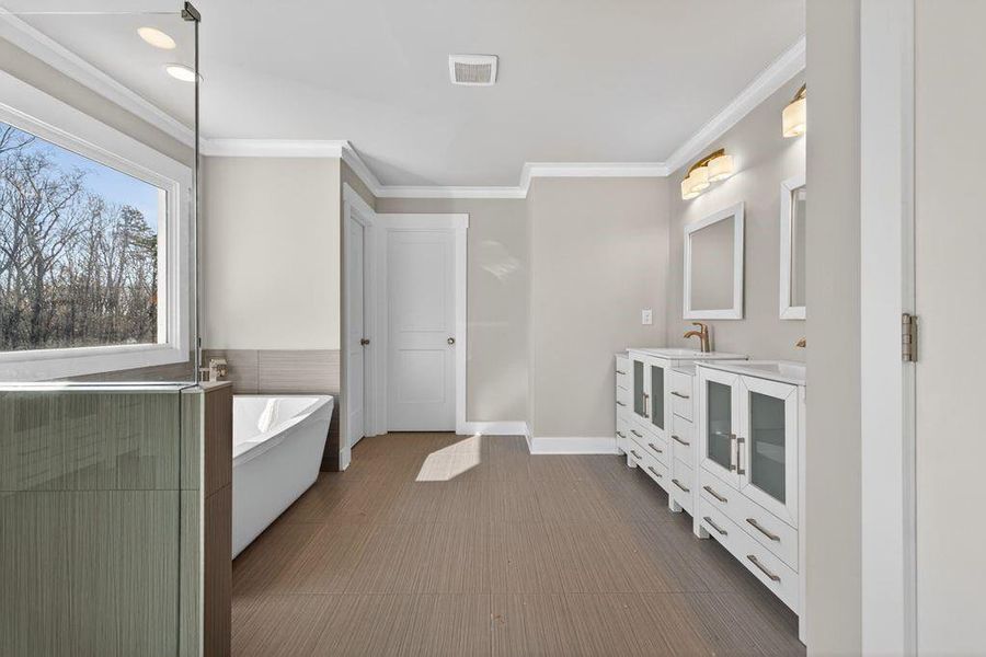 - Walk-In ClosetCrown MoldingFoyerPantryTray CeilingBreakfast BarSeparate ShowerDouble Vanity