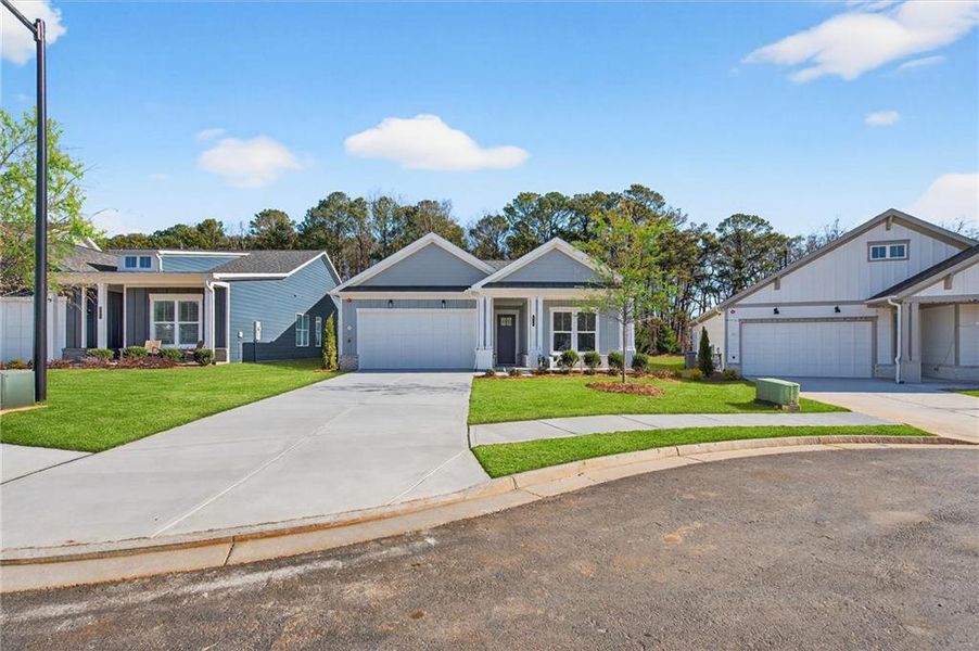Discover luxury, comfort, and convenience in The Naples by Brock Built, a beautifully designed ranch-style home in a 55+ active adult community. Featuring 10' ceilings, 8' doors, wide hallways, Flex Room and an open-concept layout, this home is perfect for relaxed, modern living. The gourmet kitchen includes stainless steel appliances gas cooktop, vent hood, built-in microwave, oven, and dishwasher while the owner’s suite offers a spa-like retreat with a dual vanity and oversized shower. Enjoy a low maintenance “Lock and Leave” lifestyle with all lawn care handled by the HOA. Community amenities enhance everyday living with a dog park, formal garden, covered pavilion with outdoor fireplace, grilling stations, pickleball courts, and raised garden beds. This home is Move-In-Ready!