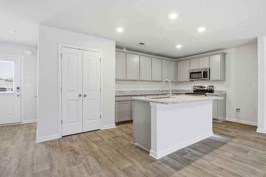 The Sierra sets the scene for family or holiday gatherings. The open concept design features an easy flow from the family room to the dining area. The kitchen provides you with plenty of cabinet and countertop space, plus an island. Upstairs are three bedrooms, a spacious primary suite with a private bath, and a convenient upstairs laundry room.