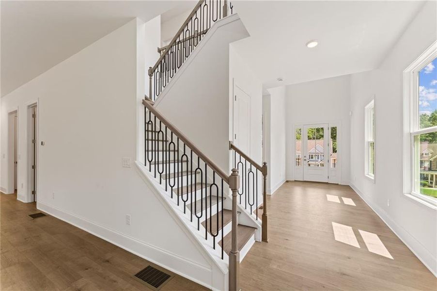 Our Wesleyan floor plan is our owner's-suite-upstairs plan with four bedrooms upstairs and one bedroom and full bathroom on the main level, for a total of five bedrooms. Clients love the open feel of the main level and the ample-sized bedrooms upstairs. This home offers some incredible finish options: quartz countertops, high-end Shrock Entra cabinets, custom tile, and a freestanding soaking tub in the owner's bath. Home is finished and ready for quick move-in.