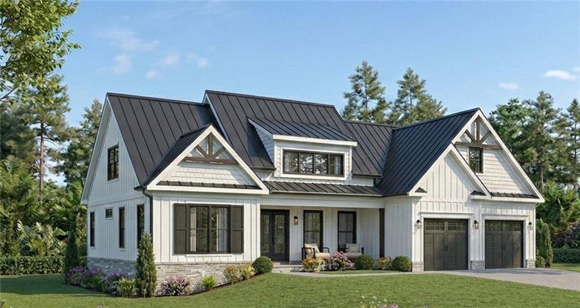 Experience one of the best of Affordable Country Club living in North Georgia in Royal Lakes, a hidden gem in a high-growth area with easy access to I-985, Lake Lanier, and the charming towns of Flowery Branch and Braselton. Residents enjoy a Social Membership included in their annual dues, granting access to the clubhouse, swimming pool, and exclusive community events. This rare lakefront homesite is nestled on a private cul-de-sac and boasts stunning views of both the water and the Scottish inspired golf course, perfectly designed for outdoor living with a main-level covered deck and a terrace-level porch. The home plan is ready for construction by the award-winning Harcrest Homes with an approximate 8-month build time and room for a pool if even more outdoor living is your desire. This modern executive 4/4 home includes premium features like 10' ceilings, quartz countertops, and hardwood floors in the firm sales price, plus generous allowances the warm a professional design team to select your custom interior finishes.