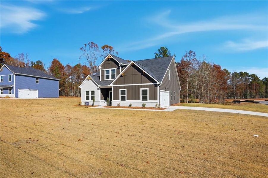 Welcome to the Adrian Floor Plan at The Woodlands Preserve where we offer spacious lot sizes with farmhouse style homes. Whether you are hosting family game night or whipping up a meal in the kitchen, the Adrian plan provides you with the space you need! This new plan boasts the highly sought-after master on the main with convenient laundry room on first floor as well. The kitchen includes a large prep island with seating, a walk-in pantry, and dining area. Upstairs you'll find a spacious loft area, 3 additional bedrooms, and full hall bathroom. The flex room on the first floor can be converted to an additional bedroom or dedicated office. Additional standard features include a covered game day patio, gourmet kitchen, recessed fireplace, smart fans, and LED mirrors.