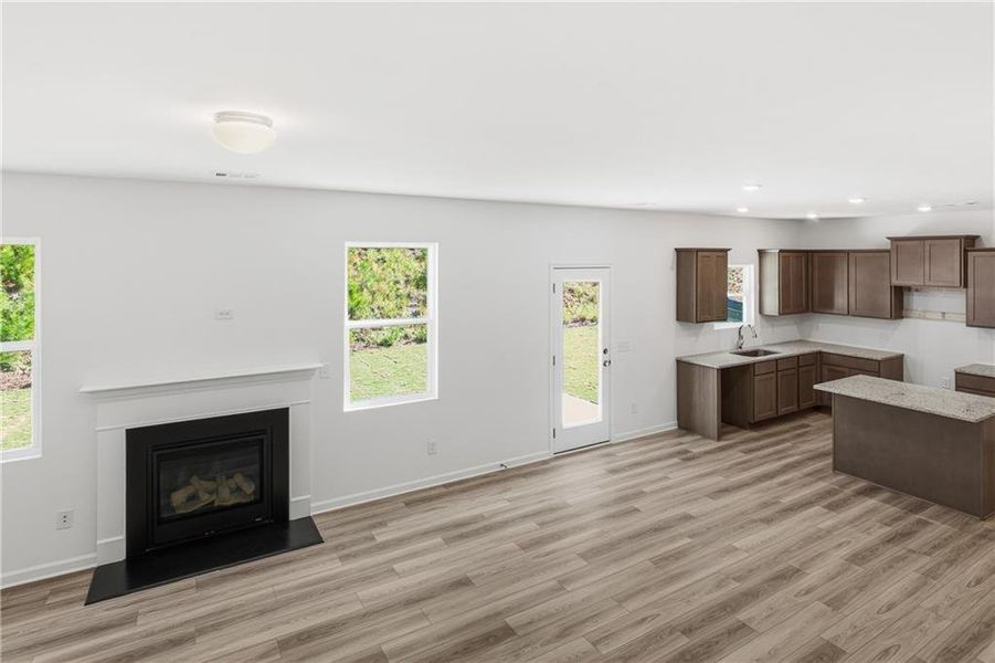 Experience comfort and sophistication in this beautifully designed 4-bedroom, 2.5-bath Turnbridge Plan. Perfect for today's lifestyle, all bedrooms are located upstairs for added privacy, while the main level offers a welcoming powder room, modern kitchen, and a large family room ideal for entertaining and everyday living. The craftsman-style exterior exudes charm with its inviting front porch and timeless curb appeal. Inside, the open-concept layout showcases a slate-surround fireplace, 36" Silvergrass cabinets, and Dallas White granite countertops, blending warmth and contemporary style. Retreat to the oversized owner's suite, featuring a large walk-in closet, separate tub and fiberglass shower with nickel fixtures, chrome shower door, and a dual-sink vanity with natural white cultured marble. Additional highlights include 34" vanities in all bathrooms, luxury vinyl plank flooring in the foyer, extended foyer, kitchen, and dining areas, plus plush carpeting throughout all bedrooms and stairs.
