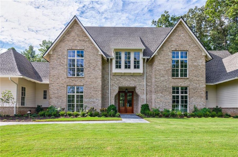 Discover move-in-ready luxury on 2 acres and schedule your private tour today for 125 Laurel Brook Ln. Light-filled interiors feature expansive windows and soaring 12' ceilings in the kitchen and family room, creating an open, airy living experience. Casual dining opens through double doors to a private courtyard for seamless indoor and outdoor living. The pool is just steps from the family room, complemented by an oversized covered bluestone porch with raised hearth fireplace, designed for entertaining and everyday enjoyment. The thoughtfully designed owners suite is set along a private hallway and includes a spacious bedroom, spa-inspired bath with makeup vanity, two separate closets with laundry access, and an adjoining flex space ideal for office, gym, or private retreat. The main level also offers a private office or den and a first floor guest bedroom with full bath, ideal for multigenerational living. Upstairs includes three bedrooms, three baths, hardwood floors, a large laundry and craft room, and a versatile flex room for media, playroom, or additional living space. Architectural details include curated exterior finishes and distinctive herringbone brick accents. Energy-efficient construction features a spray foam roofline for enhanced comfort, performance, and additional conditioned storage. Designed for low maintenance and long-term enjoyment, this refined, move-in-ready home presents a rare opportunity to own in one of the area’s most desirable new construction communities. This newly completed home offers elevated new construction in the Argonne Ridge community, ideally located off Sugar Pike near the new Batesville roundabout, just minutes to Crabapple and under six minutes to Hickory Flat shopping and dining.