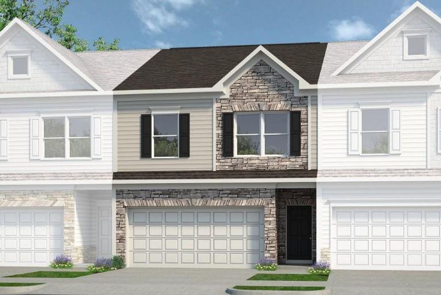 Move in Ready November! The Ellison II plan now available at Jameson Towns by Smith Douglas Homes. This 3BR/2.5BA design blends modern style with everyday functionality in an open, loft-inspired layout. Step inside through a gracious foyer that leads to a well-appointed kitchen with a huge center island, upgraded cabinetry, granite counters, tile backsplash, pantry and stainless appliances. The kitchen flows seamlessly into the great room, highlighted by a sleek linear fireplace and direct access to the rear patio and backyard. Durable vinyl plank flooring extends through all main level living spaces. Upstairs, an open iron staircase leads to the primary suite, featuring a tray ceiling, spa-like bath with dual vanity, large walk-in closet, water closet plus a garden tub and separate tile shower. Two secondary bedrooms, a shared hall bath and a convenient laundry room complete the second level. Additional features include nine ft ceiling heights on both levels. neighborhood amenities such as a planned neighborhood pool with cabana, playground and lawn maintenance included in HOA! More time for you! Photos representative of plan not of actual home. Seller incentives with use of our preferred lender.