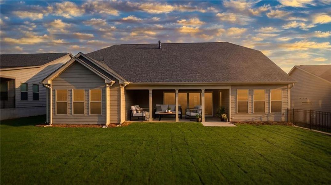 Tifton B. Main floor living at its best, includes a dining room, study, kitchen with large island that opens to the family room and breakfast room. The primary bedroom includes a sitting bay and bath with a huge walk-in closet that has a door leading straight to the laundry room. Secondary includes a walk-in closet with easy access to hall bath. Covered deck off family room with an additional grilling patio. A window wall in the family room as well as quad doors leading to the patio. And finally a Golf Cart garage and an extra 3ft extension to the garage. The Award-Winning Builder, Patrick Malloy Communities, provides an Award Winning 55 plus community project, Soleil Belmont Park. It features 471 low maintenance homes situated on large home sites. Located between the picturesque towns of Milton and Canton, Soleil Belmont Park provides a dream setting for active adults aged 55 and above. The Soleil brand has redefined active adult living in Georgia with its resort style of living. Residents of Soleil Belmont Park are privy to an array of amenities: a rejuvenating resort-style pool, a cutting-edge health & fitness center, a cozy coffee and cocktail bar, pickleball/tennis courts, bocce ball, a gourmet kitchen for catering, winding walking trails, flourishing gardens, and a dedicated arts & crafts studio. Further enriching the experience, an on-site lifestyle and travel director ensures an ever-evolving calendar of events and excursions. Joining the Soleil community means bidding adieu to seasonal chores and property upkeep. We offer comprehensive services, allowing residents the freedom to chase passions, kindle friendships, and truly relish life. For the discerning active adult, Soleil Belmont Park isn't just a community, its home.