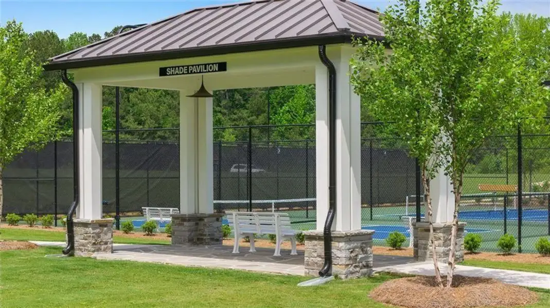 Tifton B. Main floor living at its best, includes a dining room, study, kitchen with large island that opens to the family room and breakfast room. The primary bedroom includes a sitting bay and bath with a huge walk-in closet that has a door leading straight to the laundry room. Secondary includes a walk-in closet with easy access to hall bath. Covered deck off family room with an additional grilling patio. A window wall in the family room as well as quad doors leading to the patio. And finally a Golf Cart garage and an extra 3ft extension to the garage. The Award-Winning Builder, Patrick Malloy Communities, provides an Award Winning 55 plus community project, Soleil Belmont Park. It features 471 low maintenance homes situated on large home sites. Located between the picturesque towns of Milton and Canton, Soleil Belmont Park provides a dream setting for active adults aged 55 and above. The Soleil brand has redefined active adult living in Georgia with its resort style of living. Residents of Soleil Belmont Park are privy to an array of amenities: a rejuvenating resort-style pool, a cutting-edge health & fitness center, a cozy coffee and cocktail bar, pickleball/tennis courts, bocce ball, a gourmet kitchen for catering, winding walking trails, flourishing gardens, and a dedicated arts & crafts studio. Further enriching the experience, an on-site lifestyle and travel director ensures an ever-evolving calendar of events and excursions. Joining the Soleil community means bidding adieu to seasonal chores and property upkeep. We offer comprehensive services, allowing residents the freedom to chase passions, kindle friendships, and truly relish life. For the discerning active adult, Soleil Belmont Park isn't just a community, its home. Disclaimer Front exterior photo is of a model of the same floor plan. Actual finishes, features, and upgrades may vary in this specific home.