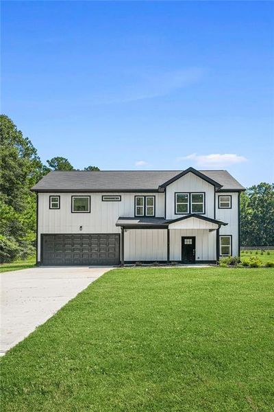 Experience modern farmhouse living on over an acre in this brand-new, light-filled residence. Perfectly placed windows and elevated fixtures create a bright, welcoming atmosphere from the moment you enter. Gorgeous LVP flooring grounds the main level for effortless everyday living, while lush new carpet adds comfort to the upstairs bedrooms.