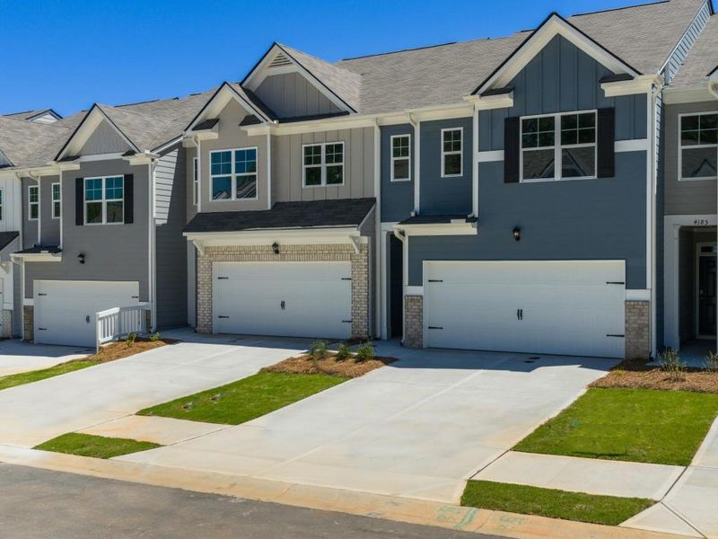 The new construction Salisbury plan at 64 Hughes Place Drive 2 story town home features 3 bedrooms and 2.5 bathrooms in 1,857 square feet along with a 2 car garage in new Dawsonville community, Hughes Court. As you step off the front porch, a long foyer welcomes you and leads into the open concept main living area. A large family room is the perfect place for family and friends to gather or for a quiet night with a book or movie. The family room flows seamlessly into the well-appointed kitchen with a center island, quartz counter tops, white subway tile back splash, burlap cabinets and stainless steel appliances. A dining area directly off the kitchen provides space for a dining table and opens onto the back patio. There is also a half bathroom tucked way on the first floor. Up the stairs, you'll turn from the landing into the primary suite. This spacious bedroom is complimented by the en suite bathroom with separate tub and shower, dual vanity, water closet, linen closet and room walk-in closet. Across the landing you will be led into a loft area that is perfect for a game room, secondary living space or home office. 2 additional bedrooms, the laundry room and an additional bathroom with dual vanity round out the upper floor. Just minutes from Lake Lanier, homeowners can enjoy endless opportunities for outdoor recreation. With plenty of dining options, shopping centers and everyday conveniences nearby, Hughes Court offers a perfect balance of comfort and accessibility at 64 Hughes Place Drive.