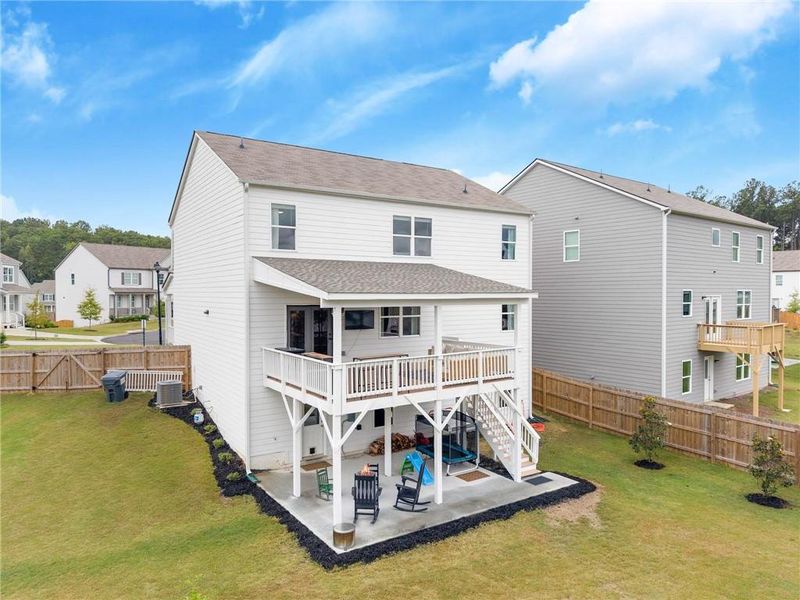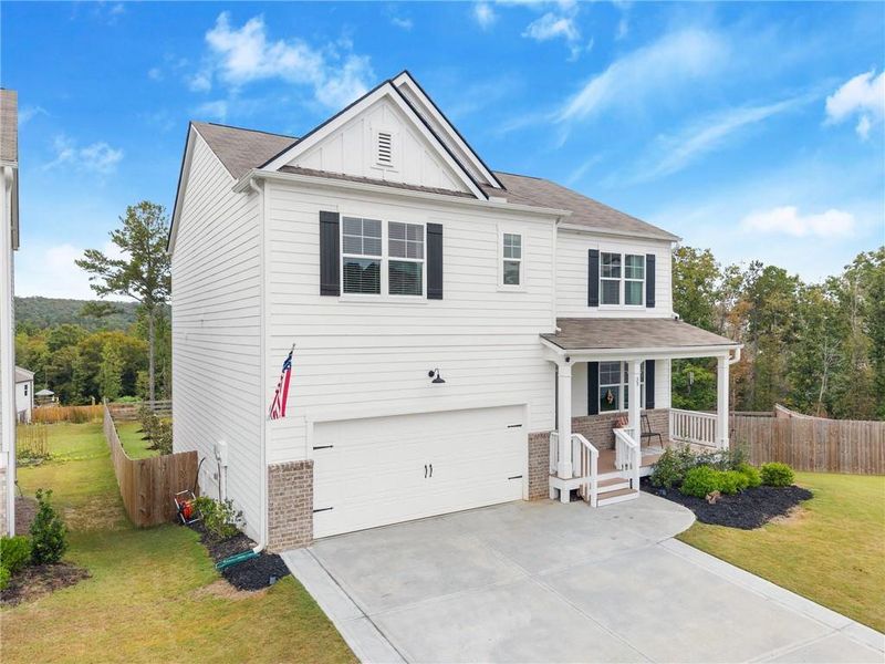 Beautifully maintained and recently updated 5-bedroom, 3-bath Craftsman in sought-after Etowah Preserve! Built in 2023, this home has been thoughtfully upgraded with an extended covered back porch with stairs, an expanded patio, and a widened driveway. Inside, enjoy an inviting open floor plan featuring a white kitchen with stone countertops, a newly upgraded oversized island, and a gas stove that can run on propane tanks or an optional permanent setup. A built-in electric fireplace, whole-home water filtration system, and fresh paint with custom accent walls add warmth and style throughout. The full, walk-out unfinished basement provides endless potential for future expansion. Neighborhood amenities include a clubhouse, swimming pool, pickleball courts, playground, and tennis. Convenient to GA-400, top-rated schools, and shopping—this home is truly move-in ready with modern comfort and charm!