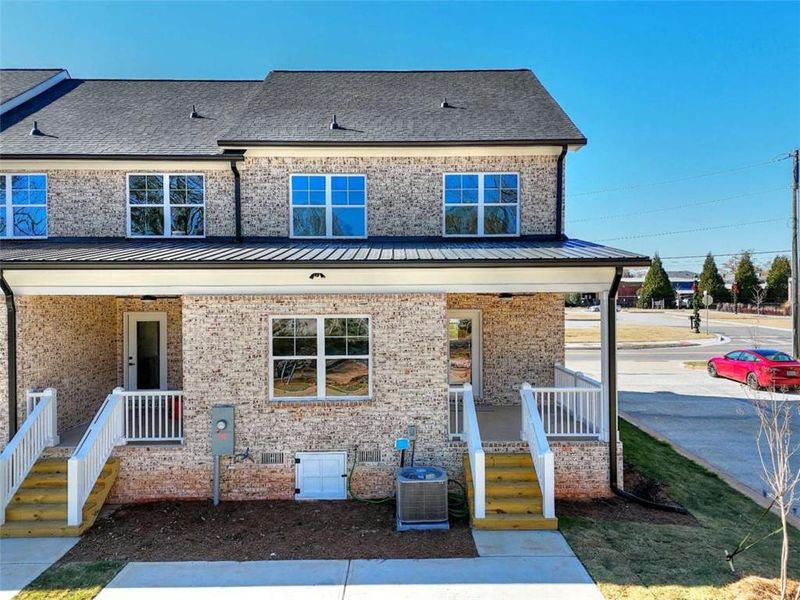 Move to Monroe! LIVE, WORK, DINE & PLAY in the heart of Downtown Monroe. Presenting The Overlook of Monroe, a rare downtown luxury 4 Bedroom Townhome opportunity where concerts, festivals, vibrant shopping and dining are just outside your front door. These 4-sided Brick, stylish & modern new construction 2-story Townhomes are beautifully detailed with numerous upgrades. Discover the charm of this inviting, thoughtfully designed open concept that seamlessly blends the Living Room, Dining area, Bar Nook and Kitchen to create the ideal layout for entertaining. The large Foyer is inviting and includes two separate areas to design and create as you choose along with a Coat Closet and Powder Room. Relax in the Living Room around the Modern, Electric Fireplace with a Custom Built Mantle. The Kitchen is sure to impress with Quartz Countertops, Subway Tile Backsplash, Custom Built, Soft-Close Cabinets, a Barn-Style 1/2 Glass Pantry Door and Stainless Steel Appliances. There is Recessed Lighting throughout and Tile Flooring and Granite Countertops in all the Bathrooms. The Owner's Suite is conveniently located on the main floor and boasts a Full Bath with a Walk-in Tiled Shower with Frameless Glass Door and Rain Showerhead. There is also a Walk-in Primary Closet with Double Shelving for lots of clothes. The upper level includes 3 additional Bedrooms with Double Shelving Closets, a Tiled Bathroom and a Tiled Laundry Room. There is also a large attic space for additional storage. These downtown Townhomes provide a low maintenance brick exterior with 3 separate covered areas to enjoy the outdoors including the Front Porch, an open-air Back Porch and oversized Balcony to entertain friends while overlooking the Town Green. Experience a lifestyle of comfort and convenience in these beautifully appointed townhomes. Total SF including Covered Porches is 2,016. Townhomes include 1 Year Builder Warranty. There are currently 4 units available including 2 Traditional Style Finishes (Cabinets, Doors, Flooring, Lighting) and 2 Modern Style Finishes. This listing is for the end unit.