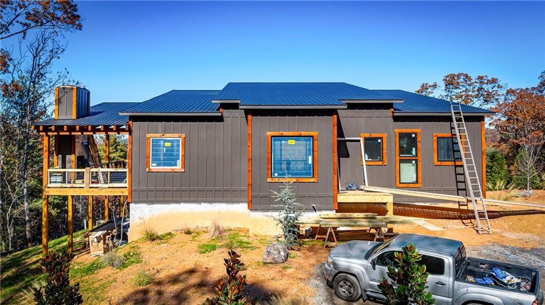 Acreage of Awesome: 3 Acres of Mountain Modern Magic Awaits Imagine waking to birdsong and a soft breeze, your view sweeping across 3 acres of rolling hills where the Blue Ridge Mountains seem to bow in greeting. This new build almost complete 4-bedroom, 3.5-bath Mountain Modern haven is like a warm mountain embrace-fully furnished with high-end touches upon completion, ready for your sky-high adventures. The gentle lot offers endless options: a croquet lawn, pickleball court, mini-golf course, or private pool. Enter to hardwood floors blending with Wood and Drywall for a natural feel. The kitchen shines with quiet high-end appliances, cool granite counters, custom cabinetry for easy organization, and a pantry big enough for a wine collection. It connects to a spacious dining area for shared meals, leading to the great room's gas log fireplace and wall of windows flooding the space with long-range views. Head outside to the generous deck and exterior fireplace for storytelling under the pines, with the land inviting your ideas on those soft slopes. The terrace level adds that extra layer of comfort: A versatile den/media lounge complete with a wet bar for casual cocktails and binge-watching sessions, a second primary suite designed for quiet downtime, and two bright guest bedrooms sharing a luxurious bath with relaxing amenities and natural light. A quick 5-mile drive to Blue Ridge's eats, music, and river paths, this spot launches your Appalachian outings. Why limit to square feet when acres of wonder wait, almost yours? Your mountain base calls-jump in!