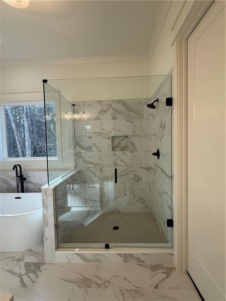 - Ceiling-HighWalk-In ClosetCrown MoldingFoyerBuilt-in BookshelvesWalk-In PantrySeparate ShowerDouble Vanity