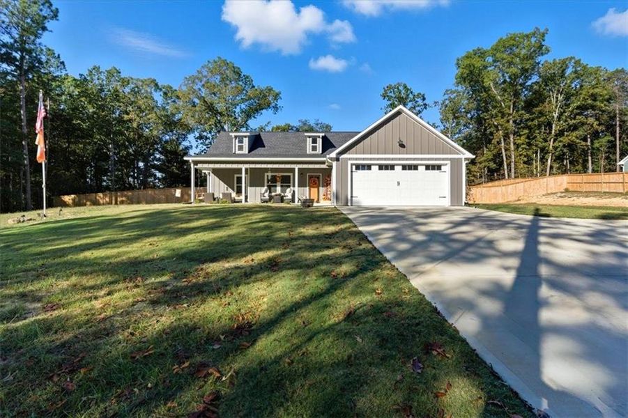 Now offered at a new list price, making this incredible property an even better value! Location, location, location! Tucked away on a private road just off Rockmart Highway, this 2024-built home combines modern style with country privacy on 1.5 acres. The 3-bedroom, 2-bath split-bedroom floor plan offers 9-foot ceilings and LVP flooring throughout the main living areas. The kitchen features granite countertops, a large island, and a pantry, opening seamlessly to the living and dining rooms. The primary suite includes a his-and-her vanity, soaking tub, tiled shower, and walk-in closet. An oversized laundry room provides extra storage, and the large garage offers ample space for tools or hobbies. Step outside to enjoy the extended covered front porch or relax on the covered back patio overlooking the newly fenced backyard—complete with a beautiful wood privacy fence, perfect for pets, play, or entertaining.