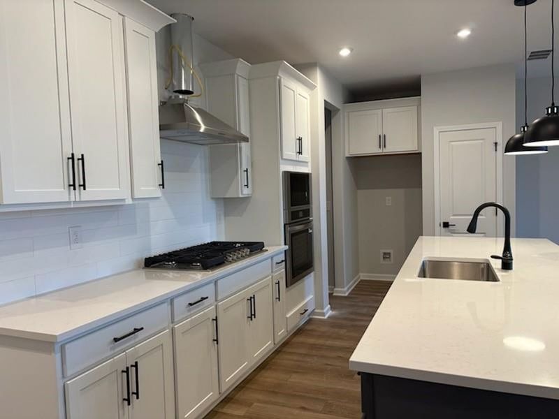 Move-in ready! This stunning 3-bedroom, 2.5-bath Cary A townhome in Lake Shore offers 2,008 square feet of upgraded living with a 2-car extended garage. The open layout showcases a gourmet kitchen with 42" white cabinets, Miami Oro Silestone countertops, upgraded white subway tile backsplash, and stainless steel appliances. Elegant touches include an electric fireplace in the living room, oak tread steps, and LED lighting with matte black pendant lights over the island.