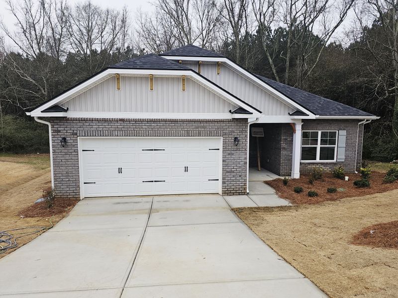 This open-concept home features a spacious great room that flows effortlessly into the kitchen and dining area-perfect for family gatherings or entertaining guests. Enjoy a modern kitchen with granite countertops, tile backsplash, and stainless-steel appliances. The owner's suite offers a relaxing escape with a tray ceiling, a separate tub and shower, and a walk-in closet. Thoughtful touches throughout include 51/4" REAL WOOD baseboards (even in the garage), 30-year architectural shingles, and a brick-front exterior for lasting curb appeal. Step outside to a covered patio, ideal for enjoying your morning coffee or evening breeze.
