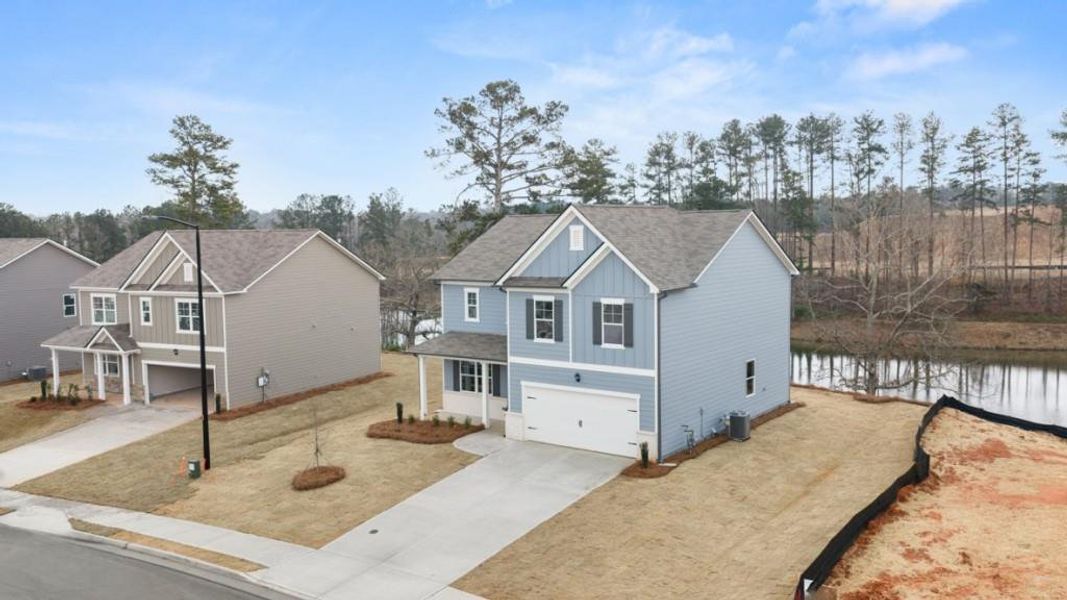 Welcome to 230 Thompson Ridge Lane, a home with a lake view in the beautiful Thompson Ridge Community of Dallas, GA. Thompson Ridge is conveniently located near shopping, dining, Bentwater Golf & Country Club, and the Seven Hills community. Featuring the Galen floorplan, this homesite offers 4 bedrooms, 2.5 bathrooms, a 2-car garage, and 2,340 square feet of well-planned living space. Upon entering the home, you are greeted by the foyer that leads past a flex space, ideal for a formal dining room or a home office. The powder room adds functionality before opening into the heart of the home. The living room is spacious and inviting, perfect for entertaining guests or relaxing with family. The kitchen features stainless-steel appliances and classic shaker-style cabinets. The kitchen island also provides ample countertop seating and a large pantry. Upstairs, all four bedrooms are thoughtfully arranged alongside two full bathrooms and a centrally located laundry room. The primary suite is complete with a spacious bedroom, a walk-in closet, and a luxurious bathroom featuring a double vanity, separate soaking tub, and walk-in shower. Three additional bedrooms and a full bathroom round out the second floor. If the Galen at 230 Thompson Ridge Lane sounds like the home you've been searching for, give us a call today. We would be delighted to schedule your on-site appointment at Thompson Ridge in Dallas, GA and help you take the next step toward your dream home!