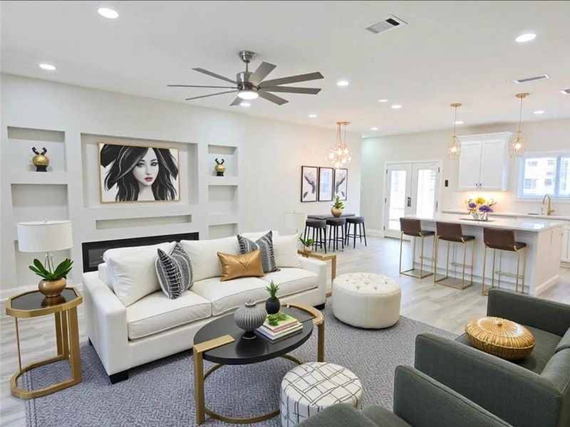 Step inside and fall in love with the bright, airy floor plan, featuring luxury finishes, high ceilings, and designer touches throughout. The chef’s kitchen shines with quartz countertops, stainless-steel appliances, and a large island that opens seamlessly to the family room.
