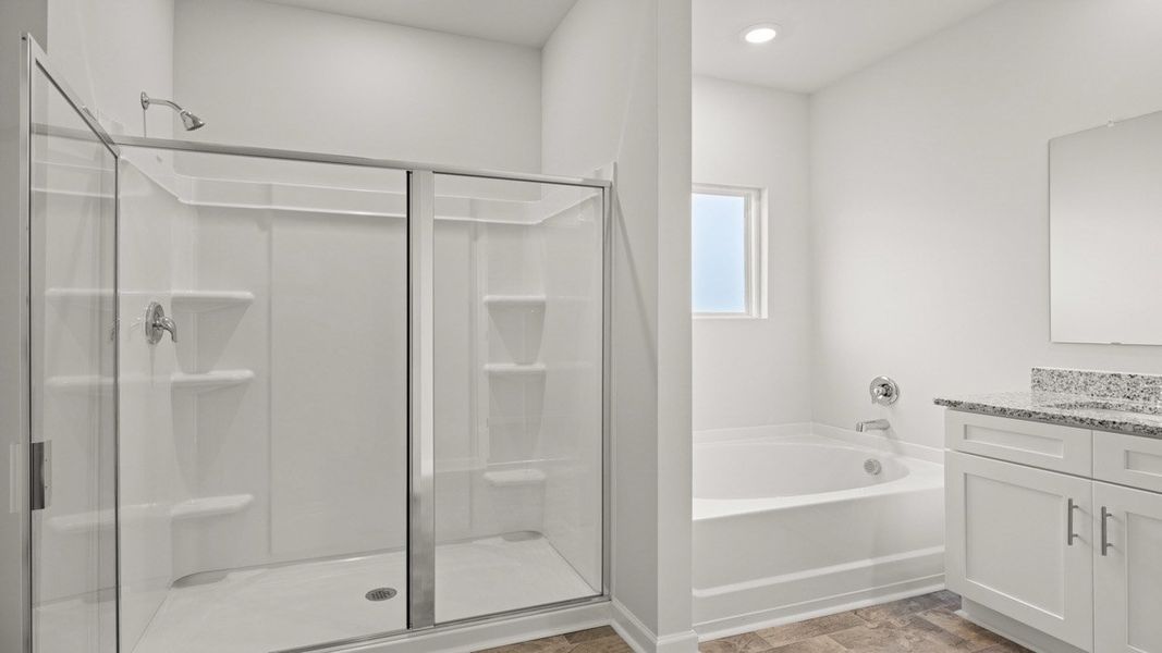 The Elle floorplan at The Estates at Deer Hollow offers 5 bedrooms, 3 full bathrooms and a convenient powder room in a two-story home covering 2,721 sq feet. The 2-car garage ensures plenty of space for vehicles and extra storage.