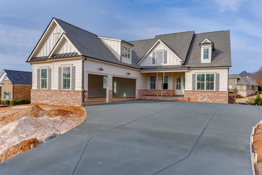 This gorgeous 4-bedroom, 4.5-bath ranch plan is exactly what you're looking for! Located in the amenity-rich golf community, Traditions of Braselton, and built by Hillgrove Homes. This new construction home is loaded with bonus features like an upgraded whole house window package, extensive trim, 8X8 storefront window, a WIFI compatible thermostat and irrigation system, Mohawk flooring, KitchenAid appliances, expansive concrete driveway, purposeful electrical plan design, double water heaters, black or bronze door hardware, and upgraded lighting and plumbing fixture package. The spacious gourmet kitchen overlooks the inviting family room, which features coffered ceilings, shiplap, a brick fireplace with a cedar mantle, and built-in custom cabinetry. The kitchen awards premium cabinetry with soft-close drawers and an oversized island, quartz countertops, a pot filler, stainless steel appliances, under-cabinet lighting, a custom tile backsplash, a farmhouse sink, and an expansive walk-in pantry with built-in shelving. The flexible dining/office space right off the foyer showcases stunning floor-to-ceiling trim. Additional features include 10-foot ceilings on the main floor, a mudroom, a guest bathroom on the main floor, and oversized closets, providing optimal storage. The relaxing primary bedroom offers a primary bath retreat with a tiled walk-in shower, dual showerheads, quartz countertops, custom tilework, frameless glass, upgraded cabinetry, and dual vanities. A true bonus is the large primary closet connecting directly to the laundry room with plentiful cabinets. Additionally, there's a junior primary suite on the main level with a generously sized bathroom and closet. Upstairs, you will find two secondary bedrooms, both with their own ensuite baths, and additional storage. The covered porch with/ outdoor fireplace overlooks a large, level wooded backyard, and there’s a golf cart garage for added convenience. This home is in the highly sought-after Jackson County School District, and the neighborhood is rich in activities like swimming, tennis, pickleball, fitness, golf, restaurant, and more. The estimated completion date is mid to late January 2026. Ask about our special preferred lender incentives!