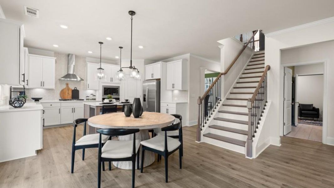 Step inside this beautifully designed home and be welcomed by a grand two-story formal living room that makes a lasting first impression. The designer kitchen features 42" cabinets, a walk-in pantry, Lusso Quartz countertops, and an island overlooking the breakfast area and family room - perfect for entertaining! The formal dining room boasts elegant coffered ceilings and 60" wainscoting, adding timeless sophistication. Cozy up by the marble-surround fireplace on cool evenings or host guests in the main-level bedroom with a full bath and shower. Upstairs, a spacious loft offers the ideal flex space for family time, a media area, or a home office. The luxurious owner's suite includes a sitting room, his-and-hers vanities, and a deluxe spa bath for the ultimate retreat. Generously sized secondary bedrooms provide plenty of comfort and versatility. This Grayson gem perfectly blends style, comfort, and space in a highly desirable community - schedule your private tour today and fall in love with your new home!
