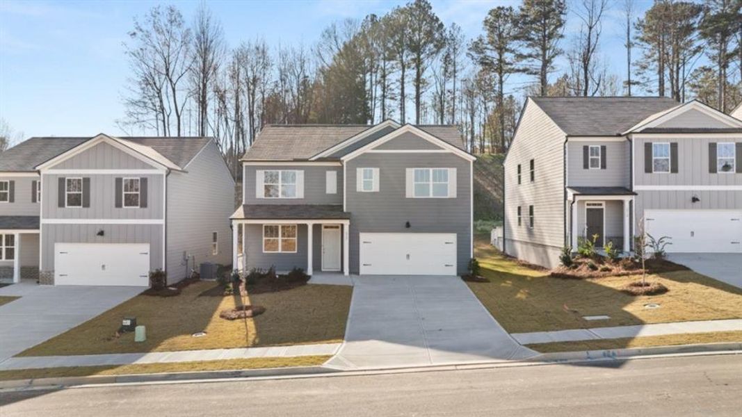 Welcome to the Hayden, two-story, single-family home plan available at 2907 Daxon Lane at Oconee Overlook in Gainesville, GA. This plan offers 5 bedrooms and 3 bathrooms in its 2,511 square feet and an attached 2-car garage. Three different exterior elevations are offered of the Hayden in Oconee Overlook. The main level is what sells most people on the Hayden. As you enter the front door, you'll come upon a flex room through an inviting cased opening - the perfect space for whatever you may need, be it a dining room, study, or play room. Traveling deeper into the home, the spacious kitchen stuns with its large center island, walk-in pantry, white cabinets, stainless-steel appliances, granite countertops and attached dining area. The adjacent living room is the ideal space to gather with loved ones or relax after a long day of work. A bedroom and full bathroom round out the main level, great for guests or in-laws. Up the stairs to the second floor, you'll come upon the primary suite: a spacious bedroom and bathroom with a double vanity, separate tub and shower, water closet, and large walk-in closet. The upstairs living room is centrally located between three additional bedrooms, the third bathroom, and the laundry room. The Hayden's upstairs is also rich with storage space, boasting two linen closets and a storage closet off of the loft area in addition to each bedroom's closet. Does a Hayden plan home in Oconee Overlook sound like a dream come true for you? Get in touch today for more details on 2907 Daxton Lane to make it your new home! NOTE: Photos are not of actual home.