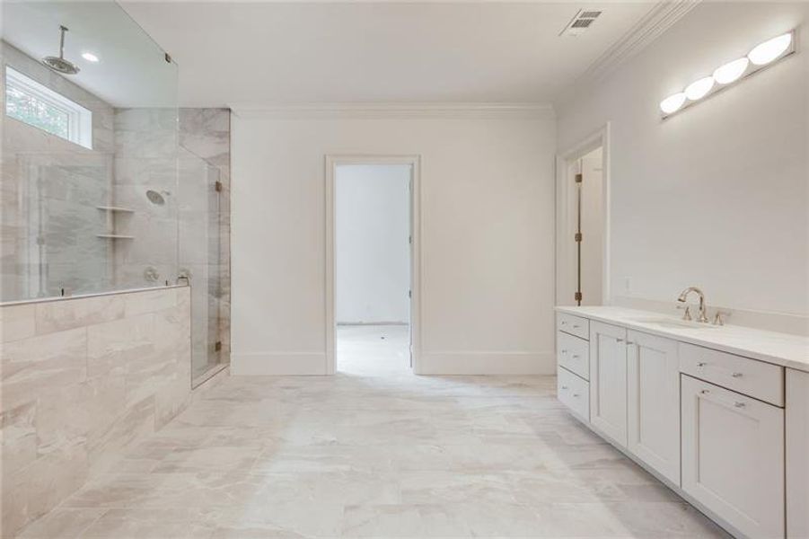 - Ceiling-HighCrown MoldingFoyerCoffered CeilingBuilt-in BookshelvesBreakfast BarWalk-In PantrySeparate ShowerDouble Vanity