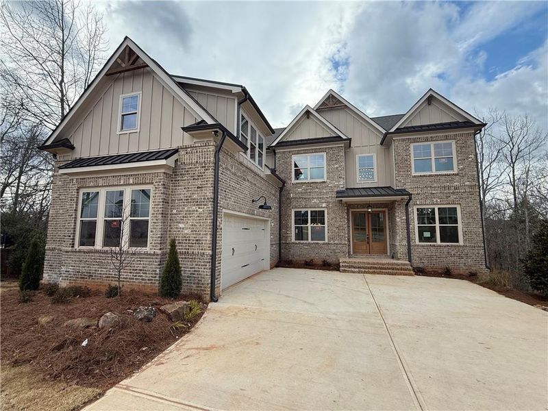NEW CONSTRUCTION /Alexi FLOORPLAN built by Bright View Homes - Stunning 5-Bedroom / 4.5 -Bathroom home with Courtyard entry 2-Car Garage with LARGE additional space for Golf Cart or Storage - Unfinished Basement. Modern living with its open concept design, perfect for gathering and entertaining. Elevated home design with sleek finishes. Upgraded Trim Package includes cedar boxed beams Ceilings in the Great Room & the Formal Dining Room, Shiplap Accent Walls and Cove Crown molding & baseboards. Interior Brick fireplace Floor to Ceiling. "Game Day" covered back Porch with connection for TV. Great Room Opens to the Breakfast & Kitchen. Gourmet Kitchen offers beautiful Quartz Countertops, luxury Shaker Style Cabinets with soft close, Farm Style Apron Front Kitchen Sink, decorative Cabinet Style Vent Hood over 5-Burner Gas Cook Top and Stainless Steel Appliances. Huge Walk-in Pantry. Mudroom off the Kitchen. Bedroom & Full Bathroom on the Main. Upstairs you'll find a large Media Room, the Primary Suite, Laundry, Half bath on the main floor, 3 Secondary Bedrooms and 3 full Bathrooms. Primary Suite features a spa-like ensuite bathroom with a Free-Standing Tub & HUGE primary shower, Tiled Bench & Niche. HIGHLY SOUGHT AFTER TRADITIONS OF BRASELTON COMMUNITY AND JACKSON COUNTY SCHOOL SYSTEM! This wonderful community offers Swim, Tennis, Pickle Ball, gym, Golf, a private Restaurant for members, a playground and so much more! Stock images of interior