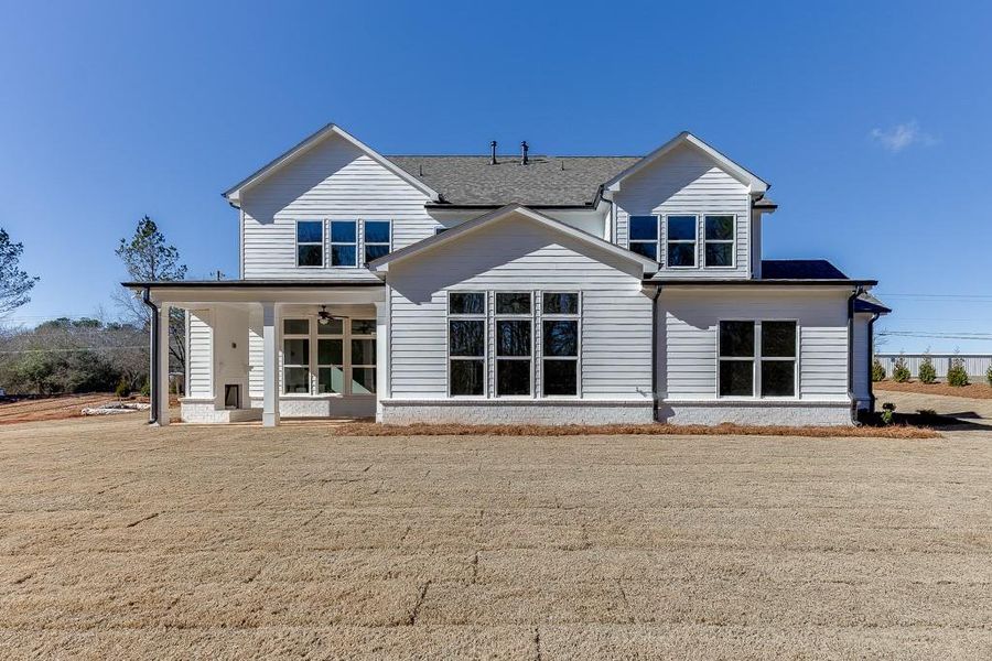 The kitchen opens to a bright breakfast area, a keeping room, and a family room featuring custom-built-ins and a designer fireplace. Step outside to the extended covered rear porch, complete with a brick fireplace — perfect for year-round entertaining, dining, and relaxation.