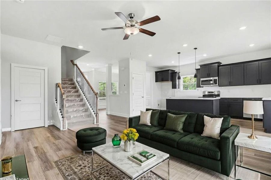 Be among the first homeowners in Phase 2 of Thunder Ridge, a beautiful new construction community set in the foothills of the Northeast Georgia mountains. Surrounded by natural scenery and mountain views, this community offers the perfect blend of peaceful living with convenient access to wineries, shopping, dining, and outdoor recreation. The owner's suite, comfortably located on the main floor, offers a private retreat with a separate Sterling shower with glass door, garden tub with window, double vanities, and a walk-in closet. The 2628 sf two-story plan is designed for both comfort and style, featuring Level 2 honey-tone cabinetry with crown molding, quartz countertops, tile backsplash, pendant lighting, and stainless steel appliances. The open layout includes an electric fireplace, and an open handrail on the main level, and the exterior is adorned with a partial brick front. Enjoy outdoor living with a spacious patio, landscaped yard, and exterior floodlights. Durable LVP flooring runs throughout the main living areas, with carpet in the bedrooms and stairs for added comfort. Additional highlights include a smart security package and extensive builder warranties-1 year workmanship, 2 years systems, and 10 years structural. Take advantage of builder-paid closing costs with preferred lender plus additional lender incentives. Conveniently located near GA 400, Thunder Ridge offers easy access to everyday essentials while maintaining a quiet, scenic setting. With a budget-friendly HOA and community amenities, this is an exceptional opportunity to own in one of Dawsonville's most desirable new neighborhoods. It is near Amicalola Falls, Burts Pumpkin Farm, Atlanta Motorsports Park and all the downtown administrative offices of Dawson county. Stock photos used for illustration purposes and may not reflect final selections. Cabinets in this home are honey-tone, they are not black like the photos.