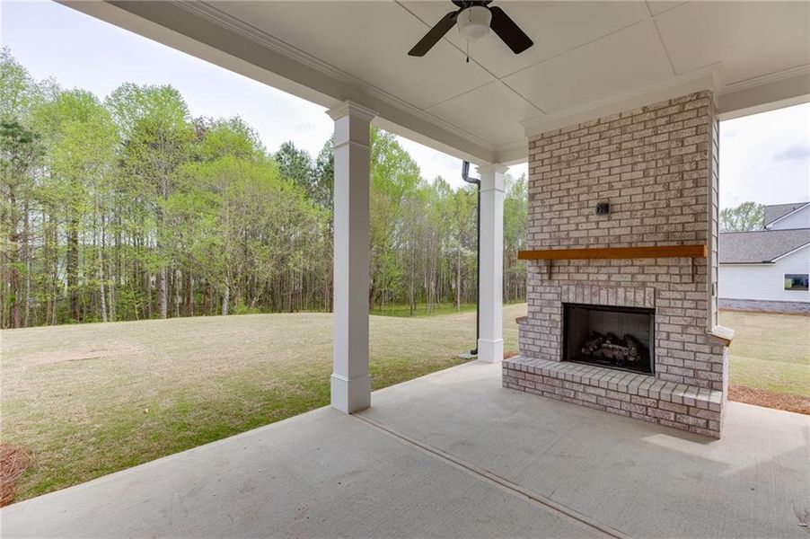 - Gas Log FireplaceOutdoor FireplaceBackyardButler's PantryLandscapingCabinetsFireplaceYardPorch