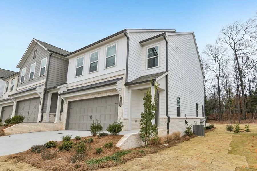 This lovely Marigold plans is thoughfully crafted to help you make the most of every space. This welcoming 1,800 sq. ft. end unit townhome offers 3 bedrooms, 2.5 bathrooms, and a wonderful covered patio ideal for relaxing outdoors. Step inside to a bright, open main level where the spacious family room flows naturally into the kitchen and a dining area- perfect for gathering with friends and family. The kitchen is a true highlight featuring painted cabinets, a generous island with seating, quartz countertops, a designer backsplash, and stainless steel appliances. Just off the dining room, the covered patio provides a peaceful spot to unwind, while the full-size 2-car garage and driveway offer convenient parking for you and your guests. Upstairs, the serene primary suite feels like a personal retreat, complete with a private bath featuring double vanities, a spacious shower, and a large walk-in closet. Two additional bedrooms, a full bath, and a conveniently located laundry room complete the second level, offering comfort and functionality to everyday living.