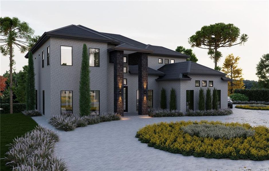 Built with longevity and sophistication in mind, this home boasts 10-foot first-floor ceilings, tempered energy-efficient aluminum windows and exterior doors, aluminum glass garage doors, high-end stainless appliances, tile-appointed baths, wide-planked hardwood flooring in bedrooms, frameless glass showers, walk-in closets, and a generous patio. Optional upgrades—such as polished porcelain flooring on the main level, floating vanities, accent walls, and a future pool—are available at additional cost. Renderings may display some upgraded features. The unfinished basement provides added potential for expanded living space tailored to the buyer’s preference.