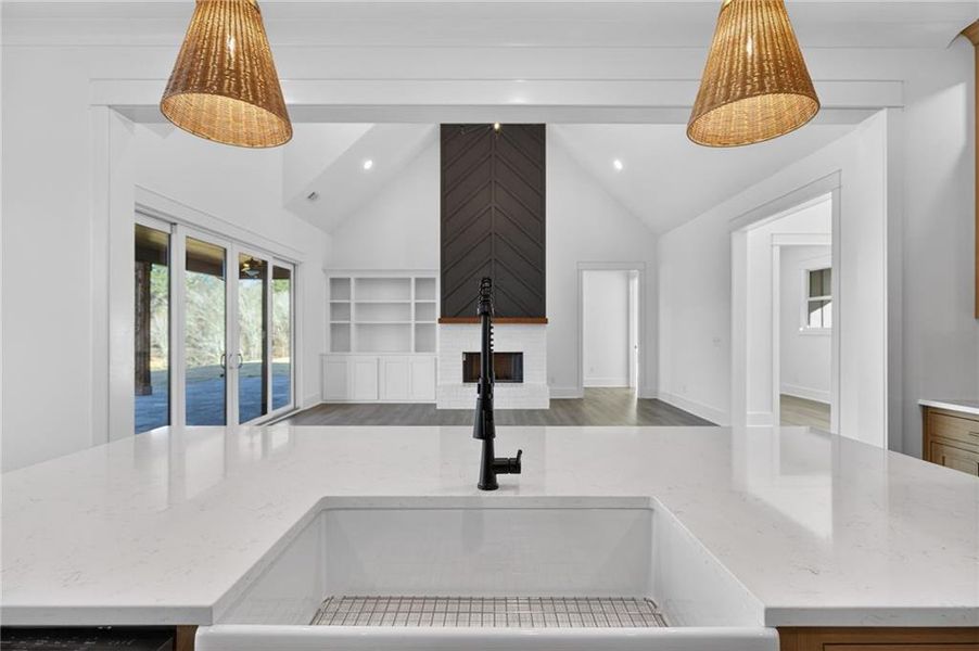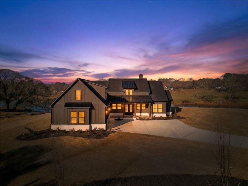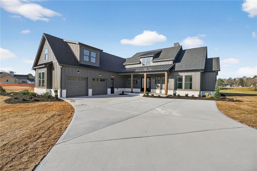 LAKE FRONT PROPERTY sitting beautifully on Lake Jane. NO HOA....new home under construction is the Keily floorplan, 4 BR/3 BA beautiful Farmhouse Ranch style home on 3.57-acre lot. This home is built on a slab with beautiful features including a brick water table on all four sides with brick accent(brick will be painted white), black window package, hardi plank siding, 18 ft garage door with opener, 30 Year architectural shingles, 5" gutters. Kitchen with large walk-in pantry, beautiful upgraded wood inset cabinets, island, farmhouse sink, quartz countertops in the kitchen and master bath, granite countertops in the baths, beautiful Cafe brand stainless-steel appliances including a range, dishwasher, microwave AND refrigerator. Dining Room with 10 ft ceilings off of the kitchen, Spacious Living Room with fireplace and open concept plan,Office, split bedroom plan,jack and jill bath for two spare bedrooms, finished bedroom with full bath upstairs, ceramic tile flooring in baths, hardwood flooring throughout. Master bathroom has his/her split double vanity, ceramic tile shower, huge walk-in closet. Upgraded closet systems throughout, huge laundry room with utility sink. This home will feature a 12 ft dual bifold door (3 pane sliders each 4 ft in size that will give you an open 12 ft door area) that opens to the covered rear back porch area with flag stoned flooring with a breathtaking view of the lake. Lake Jane Path will be paved in the Spring of 2026. Closing attorney is Talley, Richardson and Cable in Dallas, GA. When using the preferred lender, Marybeth Zimmerman with SWBC Mortgage the buyer will receive up to a $3,000 credit towards closing costs from lender and the builder will pay an additional $3,000 towards closing when using the preferred lender*Builder may make changes/substitutions. *plan shown is rendering and some changes made be made by the builder.