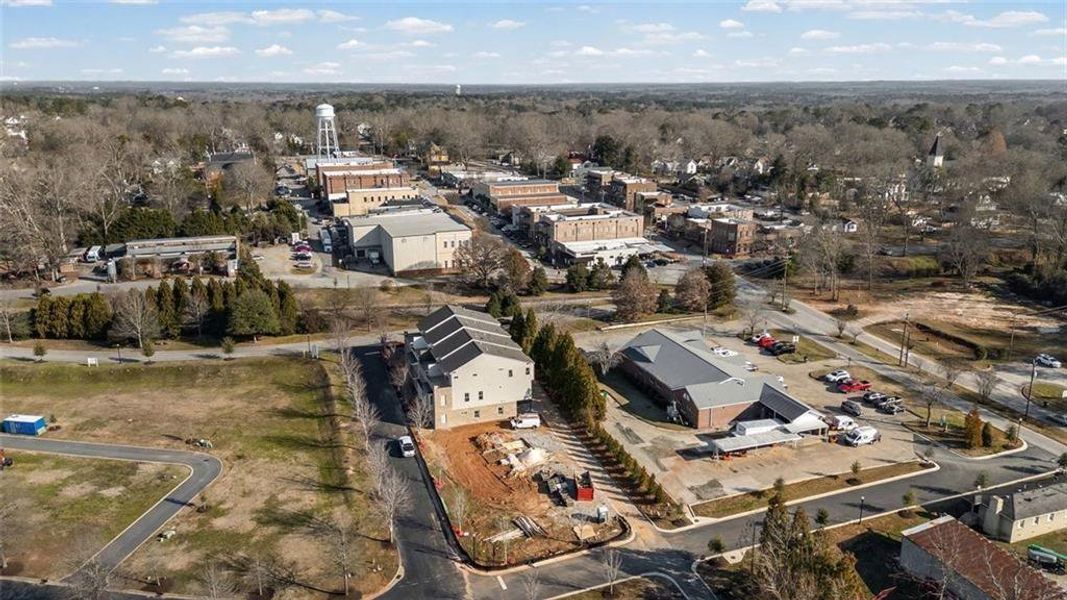 New Construction Townhome in the Heart of Downtown Senoia. Experience elevated living in this beautifully designed three-story townhome by JW Collection-The Seneca, ideally located within walking distance to the shops, restaurants, and vibrant entertainment of Downtown Senoia-all just 40 minutes from Hartsfield-Jackson Atlanta International Airport. Spacious & thoughtfully designed Interiors over 3,220 square feet of expertly crafted living space, this townhome is perfect for those seeking a blend of luxury, comfort, and convenience. Street-Level Entry. Step inside from the charming streetscape into a private two-car garage with additional golf cart parking, a bedroom with full bath, and a flex space ideal for a home office, gym, or media room. Main Level - Designed for Entertaining..The open-concept second floor features a great room with a fireplace, dining area, and a keeping room that seamlessly flows to a covered 10' x 12' deck-perfect for indoor/outdoor entertaining. The gourmet kitchen is a chef's dream, complete with Stainless steel KitchenAid appliances, Gas cooktop with custom wood venthood, Quartz countertops, Walk-in pantry with custom wooden shelving and a stylish powder room completes this level. Top Floor - Private Retreat...Upstairs, the owner's suite impresses with a spa-inspired bath, featuring a large, tiled shower, dual quartz vanities, and a custom walk-in closet system. Also on this level are a secondary bedroom with full bath, a versatile media room, and a private 24' x 10' rooftop sky terrace with spectacular views of the Gin Property neighborhood and Senoia's historic charm. The home's classic exterior blends timeless elegance with modern materials, including brick and Hardie plank siding. Every detail reflects the JW Collection's commitment to quality craftsmanship and design excellence. Don't miss your opportunity to own a luxury townhome in one of Georgia's most picturesque and walkable communities. Interior photos shown are representative of finishes from a similar community and not of the actual unit. Construction complete in April!