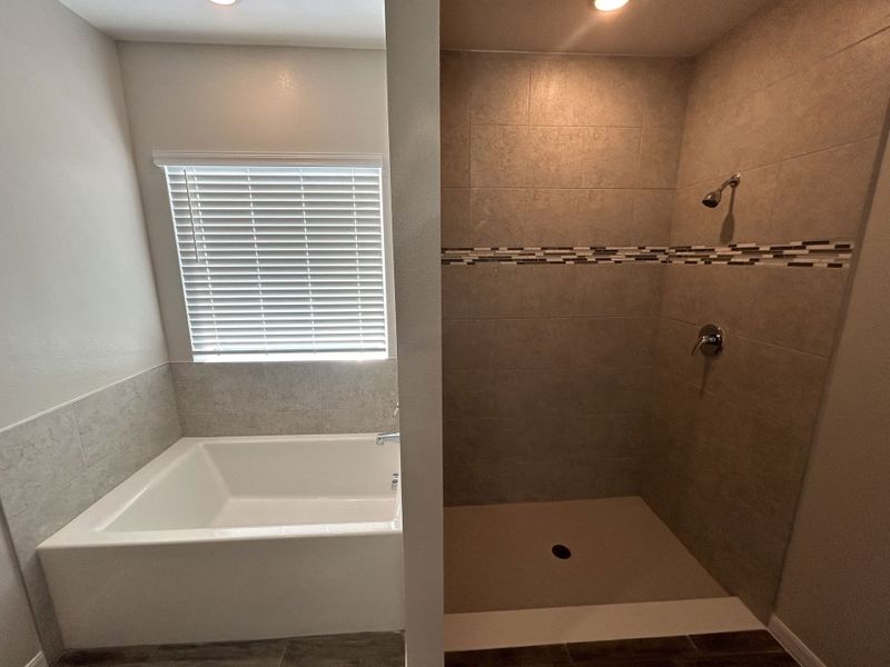 The master suite, tucked privately at the rear, offers a peaceful retreat complete with a spa-inspired bathroom, dual vanity, separate soaking tub and shower, and a perfectly placed linen closet for added convenience.