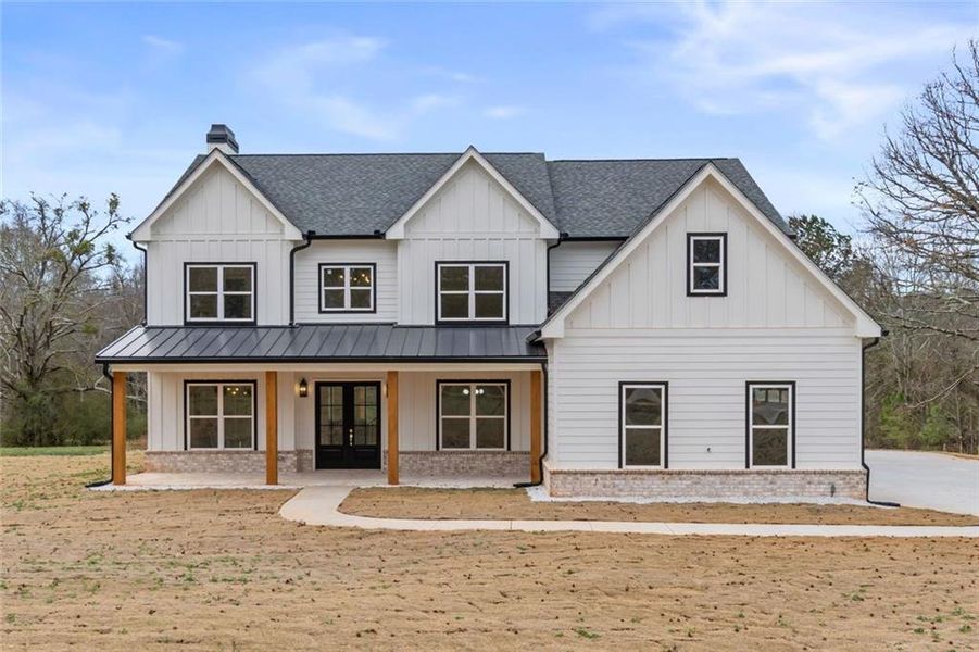 Welcome to this stunning custom-built new construction home, perfectly situated on over 2 acres in one of Social Circle’s most desirable neighborhoods. This exceptional property offers 5 spacious bedrooms and 4 luxurious bathrooms, thoughtfully designed with a modern open-concept layout and real hardwood floors throughout. Step into the grand foyer, where abundant natural light flows seamlessly through every corner of the home, highlighting the quality craftsmanship and attention to detail found in every space. A dedicated wine closet adds a refined touch, perfect for enthusiasts and entertainers alike. At the heart of the home, the chef’s kitchen features elegant quartz countertops, custom cabinetry, and ample space for both everyday living and hosting gatherings. The open layout connects effortlessly to the living and dining areas, creating a warm and inviting atmosphere. Step outside to the covered patio, ideal for entertaining or relaxing while enjoying the privacy and serenity of the expansive backyard. With over 2 acres of land, there is plenty of room for outdoor living, recreation, or future additions. The owner’s suite is a true retreat, featuring a spa-like bathroom with double vanities, a luxurious shower, and a soaking tub overlooking the backyard. A spacious walk-in closet completes the suite, offering generous storage and organization. Combining elegance, comfort, and privacy, this beautifully crafted home delivers exceptional living in a well-established, sought-after location—perfect for both family life and entertaining.