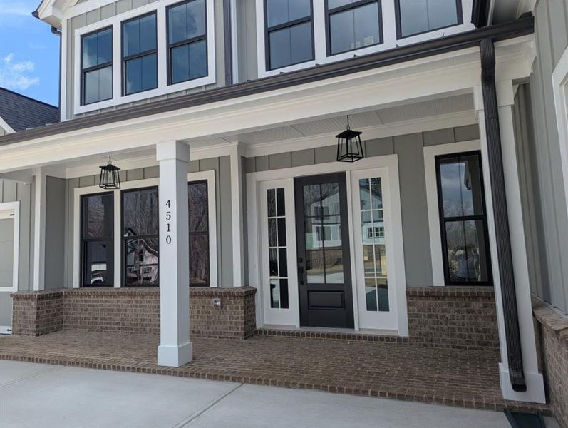 The Chatsworth Plan by Peachtree Residential. Quick Move-in! This beautifully designed 3-car garage home offers the perfect blend of style, comfort and functionality with an open-concept floor plan and thoughtfully selected upgrades throughout. From the moment you arrive, you are welcomed by a charming rocking chair front porch and an elegant single front door with sidelights. Inside, the foyer makes a memorable first impression with stained oak stair treads, designer chandelier and stained handrails with metal balusters. The formal Dining Room is beautifully appointed with wainscoting, an upgraded light fixture, and a stylish designer paint color. The spacious Family Room is the heart of the home, featuring a 42" direct vent fireplace with brick surround, cedar mantel and built-in bookcase. An impressive wall of windows, French door, and 8-foot sliding glass door flood the space with natural light and create seamless indoor-outdoor living. Step outside to the large covered back porch with extended grilling deck, ideal for entertaining, relaxing, or enjoying the expansive backyard with room for a small pool. The kitchen is designed for both everyday living and entertainment, showcasing a stunning 10-foot island, upgraded pendant lighting, quartz countertops, stainless steel appliances and abundant cabinetry. There is also easy access to the uncovered deck, making grilling convenient. The Primary Suite, on the main level, is a true retreat, highlighted by a vaulted ceiling with cedar beams, backyard view and private access to the covered porch. The spacious walk-in closet connects directly to the laundry room for added convenience. The laundry room is equipped with a sink, base cabinet and upper cabinets. Additional main-level features include engineered hardwood flooring, a functional mudroom with built-in bench and cubbies and a conveniently located powder room. Upstairs, you'll find a versatile loft overlooking the foyer with open railing and a storage closet, along with three secondary bedrooms, each offering its own private bath. One of the secondary bedrooms also has access to unfinished space above the 2-car garage, offering potential for a future exercise room, expanded closet or flex space. This exceptional home combines timeless finishes, smart design and flexible living spaces - all in a move-in ready package. Come see why you'll love living in Arden on Lanier! Call today! $20,000 Your Way Incentive* with the use of Seller's preferred lender with binding contract by 04/15/2026.