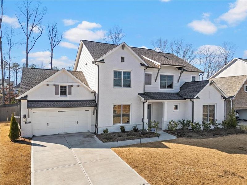 This stunning two-year-old newer construction home offers the perfect blend of modern luxury, thoughtful builder upgrades, and an unbeatable location just minutes from Marietta Town Center. Nestled in a sought-after community featuring a resort-style pool, clubhouse, pickleball courts, and tennis courts, this home is designed for both everyday comfort and elevated entertaining with a wonderful, bright and open floorplan. Inside, the layout showcases premium finishes throughout, including hickory hardwood flooring, upgraded soft-close cabinetry with premium hardware, and custom lighting. The chef’s kitchen is a true showstopper with stacked cabinets, a dramatic waterfall island topped with Calacatta quartz, upgraded GE appliances with a double oven, under-cabinet lighting, and designer tile work. A fully enclosed study provides the perfect space for a home office or flex room. The owner’s suite feels like a private retreat with a luxurious freestanding soaking tub, frameless glass shower, and upscale finishes. Additional highlights include a Jack-and-Jill bathroom, premium window treatments throughout, and custom tile details that elevate every space. Outdoor living is just as impressive, featuring a covered and extended patio, a 12-foot sliding glass door that seamlessly connects indoor and outdoor spaces, and a fenced, flat backyard ideal for relaxing or entertaining. Practical upgrades include a FOUR car garage with two EV charging outlets and a full sprinkler irrigation system in both the front and back yards. With its extensive upgrades, modern design, and exceptional community amenities, this home offers a rare opportunity to enjoy newer construction living just minutes from shopping, dining, and entertainment in Marietta.