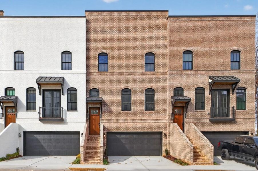 The Broadview - Homestead Collection plan built by Kittle Homes! Quick Move-In! Modern new construction townhomes in Downtown Sugar Hill, GA. Skyview on Broad by Kittle Homes offers refined urban living with a thoughtfully designed three-level floorplan, walkable access to dining, shopping, entertainment, and community events, plus sidewalks, street lighting, a dog park, and HOA-maintained covenants. Enter the home on the main living level (second floor) where an open-concept layout is elevated by 10-foot ceilings, wide-plank flooring, decorative accent walls, and abundant natural light. The gourmet kitchen anchors the space with 42" designer cabinetry, quartz countertops, a large island, under-cabinet lighting, decorative backsplash, and premium Bosch stainless steel appliances, including a 36" gas cooktop with exterior-vented wood hood. A private deck off the breakfast nook provides seamless indoor-outdoor living and entertaining. The third level is dedicated to private living, featuring the primary suite along with two secondary bedrooms on the same level, offering flexibility for guests, family, or home office space. The spa-inspired primary bath includes an oversized tiled shower with rain and handheld fixtures, frameless glass enclosure, quartz countertops, raised vanities, soft-close cabinetry, and designer mirrors. The terrace level completes the home with an additional private bedroom and full bathroom, ideal for guests, multi-generational living, or a secluded office or media space. Built with quality and efficiency in mind, homes include 14 SEER dual-zone HVAC systems, programmable thermostats, full house wrap, and third-party energy testing. Exterior elevations feature brick and James Hardie siding (per elevation), carriage-style insulated garage doors, seamless gutters, and striking black aluminum-clad windows. Skyview on Broad delivers sophisticated design, flexible living spaces, and walkable downtown convenience-modern luxury living in the heart of Sugar Hill.