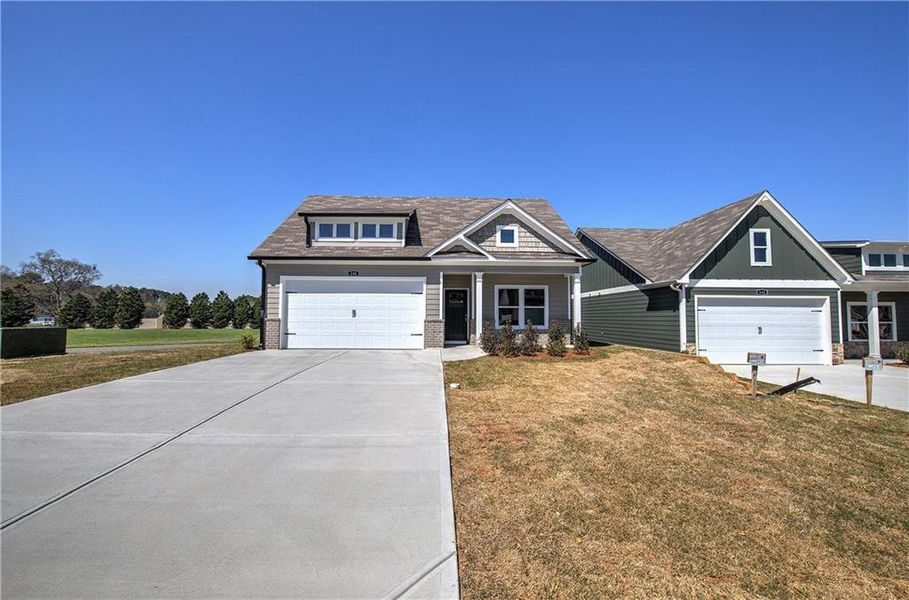 The Abernathy !! Under/Over kitchen cabinet lighting, Kitchen tile backsplash and so much more. This newly constructed home boasts a two-car garage, 9" ceilings with crown molding trim. As you walk in, you'll be greeted by a spacious great room and dining area, all open to the kitchen perfect for gatherings and entertaining. The primary suite is designed for comfort, featuring large windows that fill the room with natural light and a generous closet to accommodate all your clothing needs. Primary suite bathroom has double sink vanity and a curb-less entry tile shower. Main level also hosts the secondary bedroom and a laundry room. All this in a quaint 55+ active adult community with fully sodded yards, front, back and side maintained by the HOA.