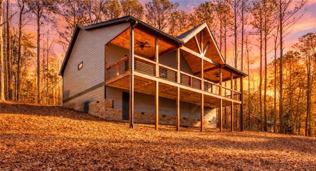 New Construction 3BR/2BA Mountain Cabin – One-Level Living | Perfect Full-Time Home, Vacation Getaway, or Airbnb Investment. Brand NEW 3BR/2BA mountain cabin on a private 0.56-acre lot in the highly desirable Coosawattee River Resort, perfect as a full-time home, part-time retreat, or short-term rental. This modern rustic one-level home features durable Hardie Board log-style siding, an open-concept floor plan, and seamless indoor-outdoor living. The kitchen boasts custom wood cabinetry, granite countertops, a large island, stainless steel appliances, and a pantry in the laundry/mudroom with washer and dryer. The bright living room has tongue-and-groove ceilings, a stacked-stone gas fireplace, and direct access to a welcoming front porch overlooking peaceful wooded surroundings. The main-level primary suite features vaulted ceilings, a generous closet, and a spa-inspired en-suite with dual vanities, granite countertops, and a large tiled walk-in shower. Two additional bedrooms share a beautifully finished bathroom with custom cabinetry, granite countertops, and a tub/shower combo. Residents enjoy public water, septic system, high-speed fiber internet, cable TV, and excellent cell service. Coosawattee River Resort offers resort-style amenities including multiple pools, tennis courts, hiking trails, parks, a fitness center, river access, fishing ponds, paved roads, and a gated entrance with gate attendant. Homeowners age 65+ benefit from no school tax. Nearby attractions include apple orchards, wineries, hiking trails, Springer Mountain (Appalachian Trail access), Amicalola Falls, Fort Mountain State Park, Brasstown Bald, trout streams, tubing, kayaking, sunflower fields, pumpkin patches, and endless North Georgia outdoor recreation. Estimated completion in approximately two months, making it an ideal opportunity for full-time living, part-time getaways, or Airbnb rental income.