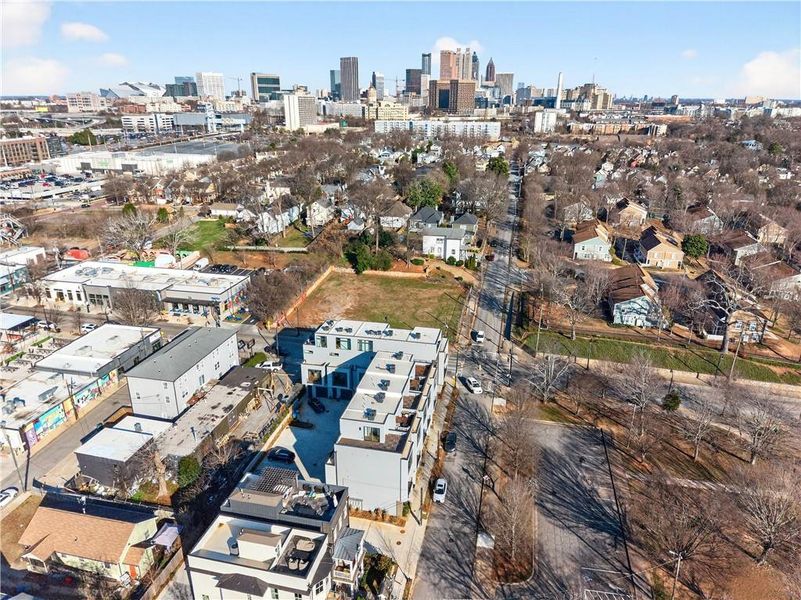 CORNER END UNIT WITH WRAPAROUND ROOFTOP TERRACE AND PARK-FACING LOCATION! Unit 10 at Ten5 Summerhill offers one of the most desirable positions in this award-winning, boutique collection of just 10 modern townhomes in the heart of Atlanta’s thriving Summerhill neighborhood. This rare corner end unit delivers exceptional light, privacy, and outdoor living experience, overlooking the greenspace of Phoenix Park.