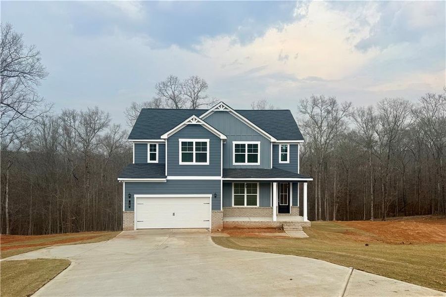 Peachwood Plan C2 - Homesite #42 This stunning 2-story, 4 bedroom / 2.5 bath Craftsman-style home sits on an expansive 1.77-acre cul-de=sac lot. Step inside to an open-concept layout featuring a spacious kitchen, dining, and family room-perfect for modern living. The Primary Suite and flex room are conveniently located on the main level. The chef-inspired kitchen includes: 42" cabinetry, Granite countertops & tiled backsplash, Large island, Stainless steel appliances and Walk-in pantry. The Primary Suite features: Ceiling fan, Double vanity sinks, Oversized tiled shower and Walk-in closet. A beautiful staircase leads to a Upstairs spacious open loft and three additional secondary bedrooms and hall bath with double sinks. Additional highlights: Ceramic tile flooring in full baths & laundry room, Rear patio overlooking a large, private backyard - ideal for entertaining. Jasper County Schools. Location perks: Close to Scenic Jackson Lake, perfect for boating, fishing, and jet skiing with easy access to Covington, Conyers, McDonough, and I-20. Incentives: Up to $30K Flex Cash, 100% Financing available, Qualify for Down Payment & $1K Reserves with Preferred Lender. Listing contains actual and file photos of similar property for representation purposes. Call TODAY to schedule your private tour!