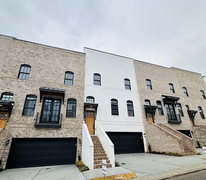 The Broadview - Homestead Collection plan built by Kittle Homes! Quick Move-In! Modern new construction townhomes in Downtown Sugar Hill, GA. Skyview on Broad offers refined urban living with a thoughtfully designed three-level floorplan, walkable access to dining, shopping, entertainment, and community events, plus sidewalks, street lighting, a dog park, and HOA-maintained covenants. Enter the home on the main living level (second floor) where an open-concept layout is elevated by 10-foot ceilings, wide-plank flooring, decorative accent walls, and abundant natural light. The gourmet kitchen anchors the space with 42" designer cabinetry, quartz countertops, a large island, under-cabinet lighting, decorative backsplash, and premium Bosch stainless steel appliances, including a 36" gas cooktop with exterior-vented wood hood. A private deck off the breakfast nook provides seamless indoor-outdoor living and entertaining. The third level is dedicated to private living, featuring the primary suite along with two secondary bedrooms on the same level, offering flexibility for guests, family, or home office space. The spa-inspired primary bath includes an oversized tiled shower with rain and handheld fixtures, frameless glass enclosure, quartz countertops, raised vanities, soft-close cabinetry, and designer mirrors. The terrace level completes the home with an additional private bedroom and full bathroom, ideal for guests, multi-generational living, or a secluded office or media space. Built with quality and efficiency in mind, homes include 14 SEER dual-zone HVAC systems, programmable thermostats, full house wrap, and third-party energy testing. Exterior elevations feature brick and James Hardie siding (per elevation), carriage-style insulated garage doors, seamless gutters, and striking black aluminum-clad windows. Skyview on Broad delivers sophisticated design, flexible living spaces, and walkable downtown convenience modern luxury living in the heart of Sugar Hill.