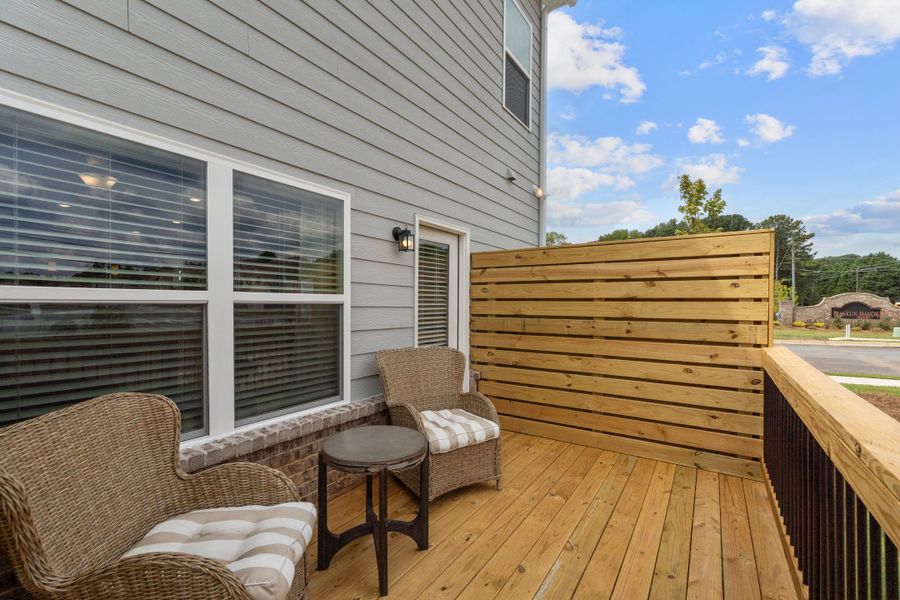 As shown here at Franklin Manor in Lawrenceville, GA. The Ellison II features a modern, loft-style layout, perfect for open living and entertaining. A generous kitchen with plenty of counter space for meal preparation and an optional island for those who love to entertain opens up to the spacious family room. The second-floor owner's suite boasts a huge bath and walk-in closet. Two well-appointed additional bedrooms and a perfectly placed laundry room finish off the second floor.