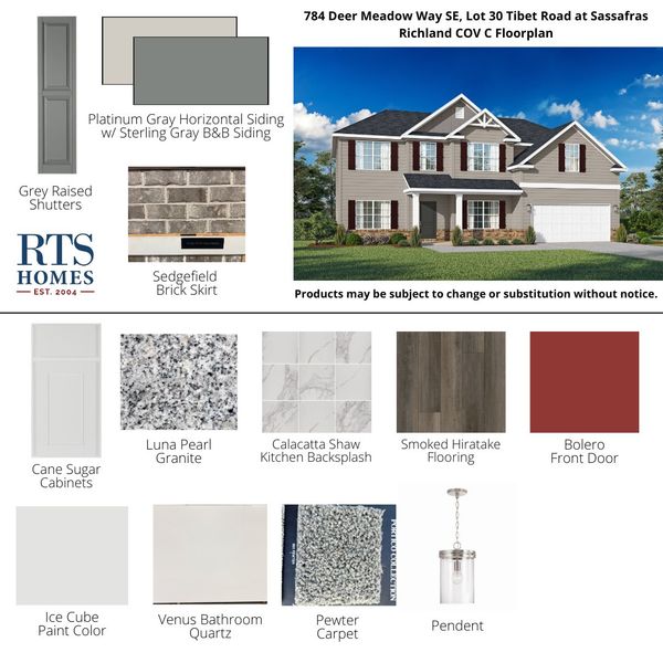Welcome to the Richland plan in Tibet Road at Sassafras Phase 2. This beautiful two-story home features 4 bedrooms and 2.5 bathrooms with an open concept layout designed for comfort and functionality. Enter from the garage into a spacious kitchen with a large island, perfect for meal prep and gatherings. The main level offers a family room with a cozy gas fireplace that flows into the breakfast area, complete with a sliding glass door leading outside, and connects seamlessly to the living room. A two-story foyer, mud room, and convenient powder room complete the downstairs. Upstairs, the private primary suite includes a sitting area and a walk-in closet, along with 3 additional bedrooms, a full bath, and a laundry area. Thoughtfully designed with style and practicality, this home has space for the whole family to enjoy. Artistic renderings are for informational purposes only. Actual floor plans, features, and inclusions may vary.