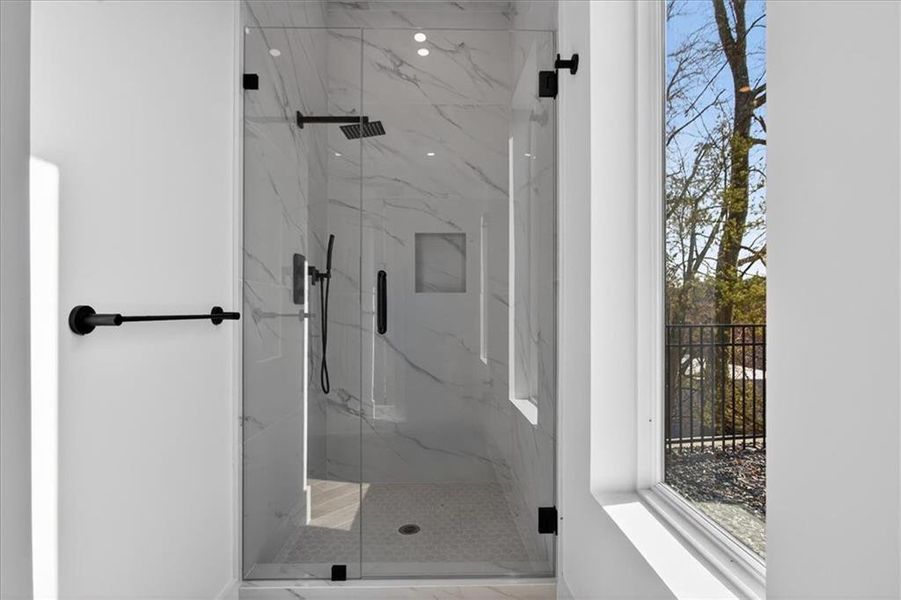 The chef’s kitchen is a showstopper—featuring Café appliances, an eat in island with waterfall countertops, a walk-in pantry with wine storage, and seamless flow into the main living area highlighted by a tiled fireplace with disappearing cabinetry for a sleek, modern aesthetic. A Tesla charging station, mudroom, and spacious walk-in laundry with sink add everyday convenience without sacrificing style.